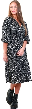 Ax Paris Black Printed Button Up Swing Midi Dress