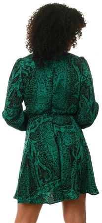 - Green Printed Wrap Over Belted Long Sleeve Skater Dress