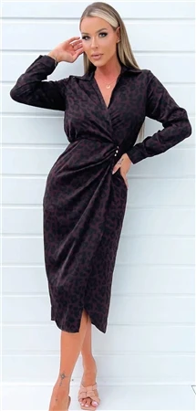 Ax Paris Plum Animal Print Midi Dress