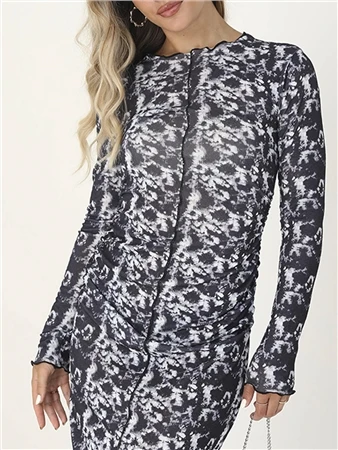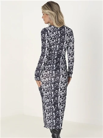Brave Soul Abstract Print Jersey Mesh Long Sleeve Maxi