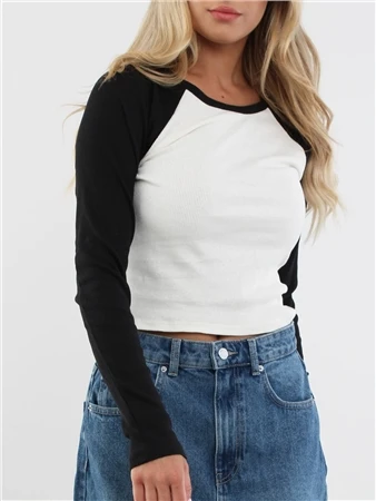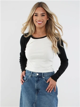 Brave Soul Black / Cream Suzie Raglan Rib Top