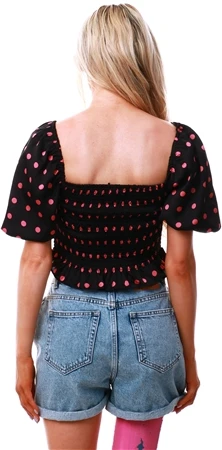 Brave Soul Black/Pink Spot Puff Sleeve Polka Top