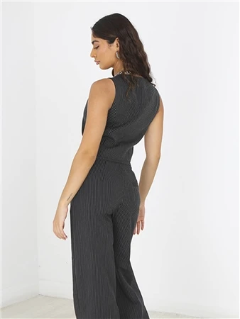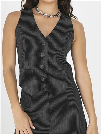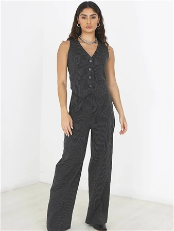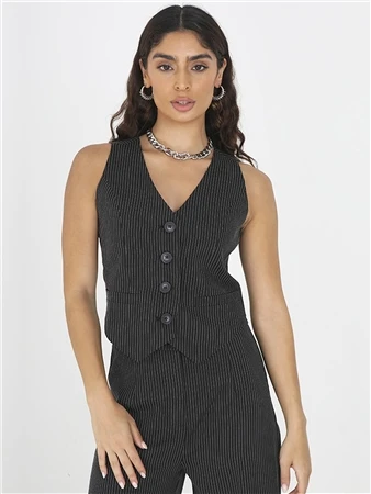 Brave Soul Black/White Pinstripe Button Through Waistcoat