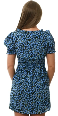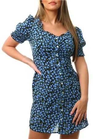 Brave Soul Blue Floral Print Button Through Mini Dress
