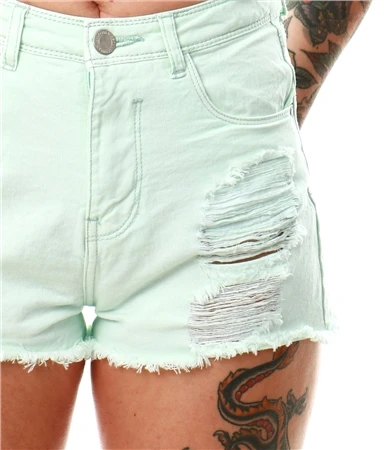 Brave Soul Mint Wendy Ripped Denim Shorts