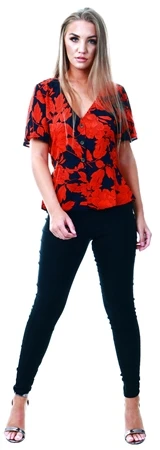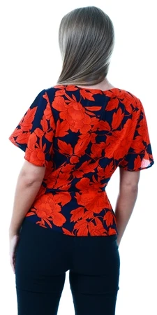 Brave Soul Navy Orange Floral Pattern Short Sleeve Top