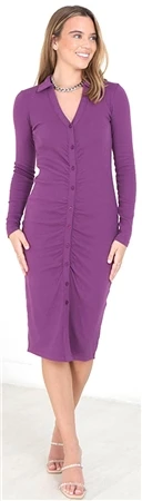 Brave Soul Purple V Neck Ruched Ribbed Long Sleeve Dress