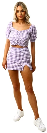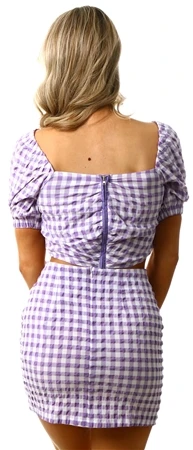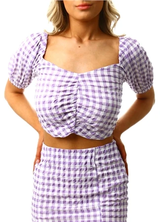 Brave Soul Violet Textured Gingham Cropped Puff Sleeve Top