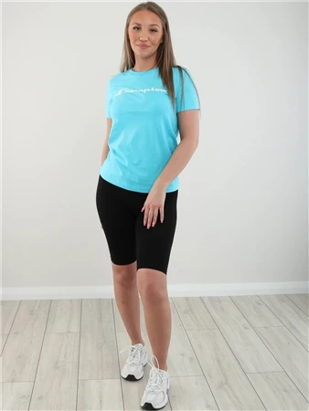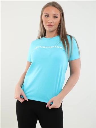 Champion Blue Big Script Logo Print Cotton T-Shirt