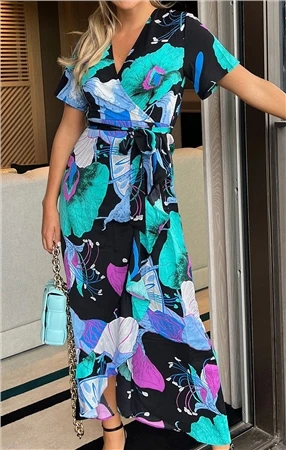 Girl In Mind Turquoise Floral Farrah Split Hem Frill Detail Maxi Dress