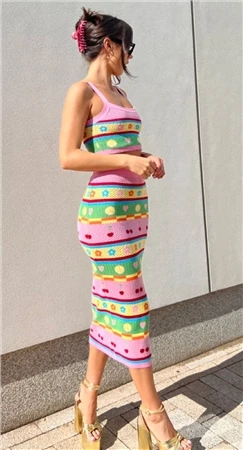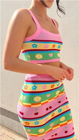 Glamorous Pink Novelty Stripe Crop Knit Top