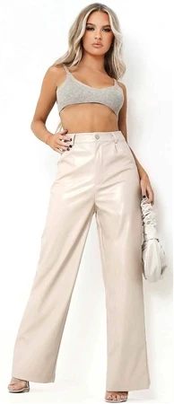 Missy Empire Stone Emily Pu Wide Leg Trousers