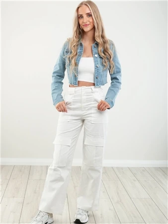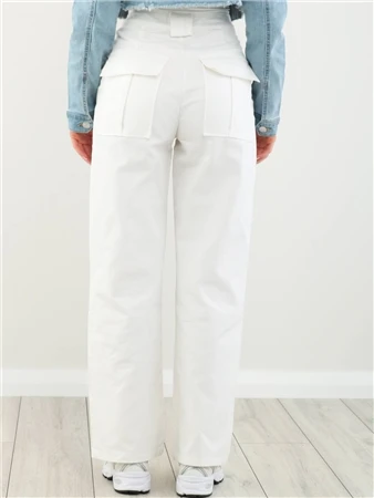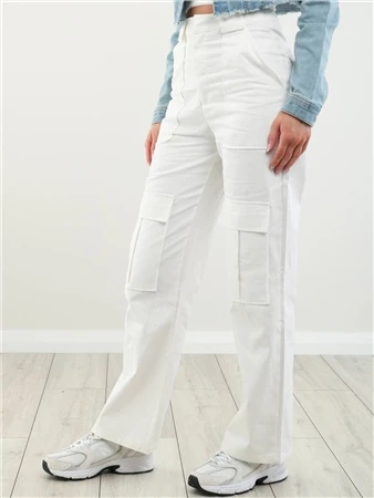 - Get the ultra cool and casual look babe with our Amaia White High Waisted Cargo Trousers, featuring a high waisted look with pocket detail in an oversized fit. Perfect styled with a crop top and trainers