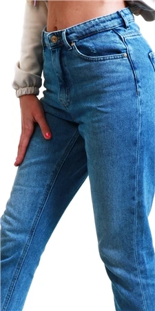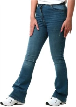 Neon & Nylon Blue / Medium Blue Denim Wide Patchwork Detailed High Waisted Jeans