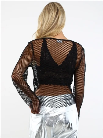 Noisy May Black / Black Yara L/S O-Neck Mesh Net Top
