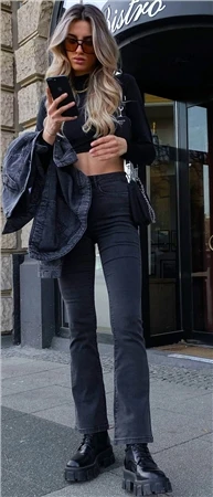 Noisy May Dark Grey Sallie High Waist Flared Jeans
