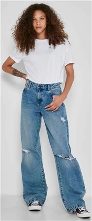 Noisy May Light Blue Denim Nmamanda Wide Leg Mid-Rise Jeans