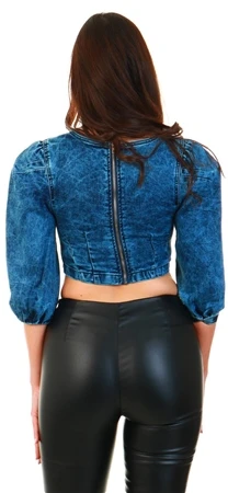 Parisian Acid Wash Denim Balloon Sleeve Top