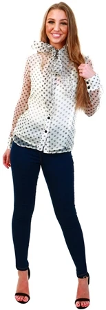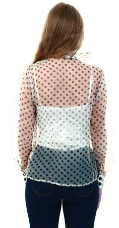 Parisian Beige Polka Dot Organza Pussy Bow Button Up Front Long S