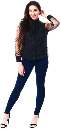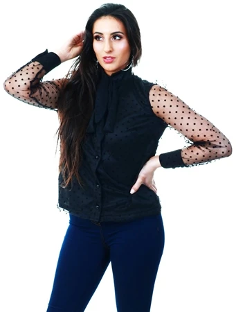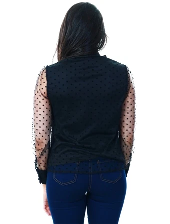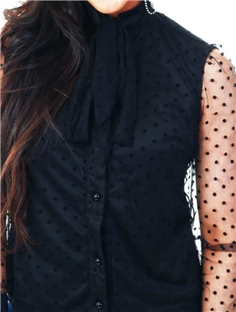 Parisian Black Dobby Mesh Pussy Bow Blouse