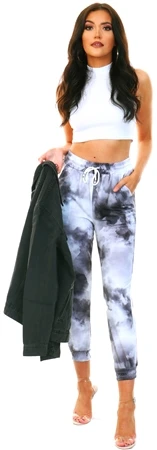 Parisian Black Tie Dye Draw Cord Jogger Bottoms