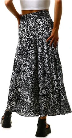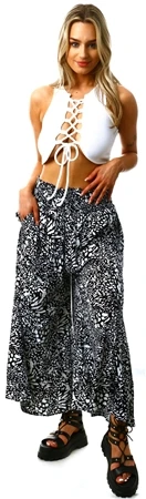 Qed Black / White Pattern Wide Leg Trousers
