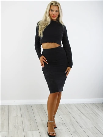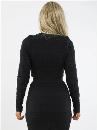 Saint Genies Black Crochet Knit Long Sleeve Crop Top