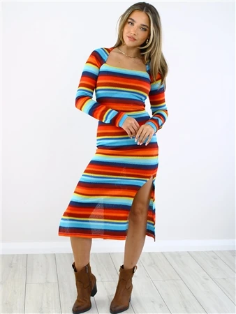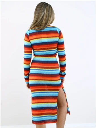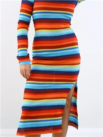 Saint Genies Blue / Red / Yellow Stripe Midi Knit Dress