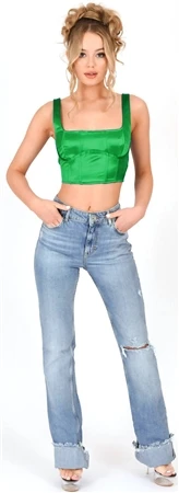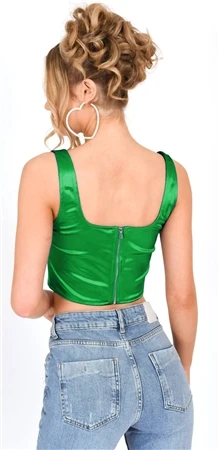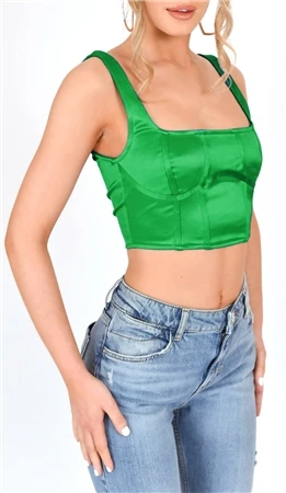 Saint Genies Green Robyn Satin Square Neckline Crop Top