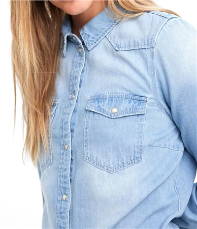 Veromoda Blue / Light Blue Denim Maria Slim Fit Shirt Collar Shirt