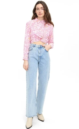 Veromoda Pink / Parfait Pink Printed Crop Shirt