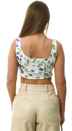 Vila Cloud Dancer Floral Corsage Cropped Top