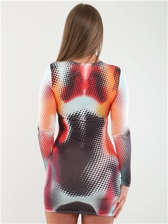 Vivichi Black / Orange Body Print Detail Bodycon Dress