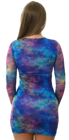 Vivichi Blue Tie Dye Mesh Ruched Long Sleeve Dress